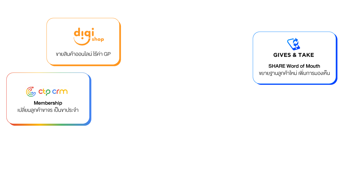 ทางบริษัทจึงพัฒนา Platform ที่เพิ่มประสิทธิภาพแคมเปญ ด้วยการสร้างไวรัลหาลูกค้าที่ตรงกลุ่มเป้าหมาย และลดค่าโฆษณา ด้วย LINE OA ภายใต้ชื่อ “ Gives and take ( Flex Share )” ซึ่งเป็นแนวคิดแบบ word of mouth marketing การแนะนำแบบปากต่อปาก และ Platform “Digi Shop (E-commerce)” ที่สามารถให้ลูกค้า สั่งซื้อสินค้า ตั๋วคอนเสิร์ต แบบครบ จบ ภายใน LINE OA ผลลัพธ์ของธุรกิจ Digital Marketing จะวัดเป็น ROI ในแต่ละวันและทุกวัน เป้าหมายหลักของ เราคือการช่วยให้ลูกค้าของเราได้รับ ROI สูงสุด